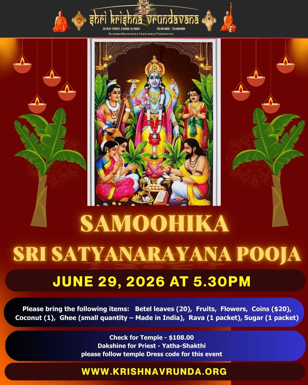 Poornima : Saamohika Sri Satyanarayana Pooja on Wednesday, 1st April 2026 5.30pm