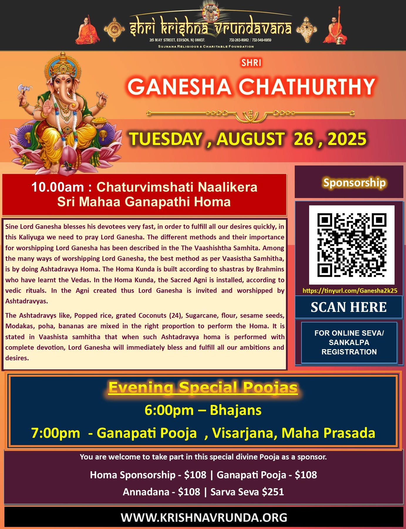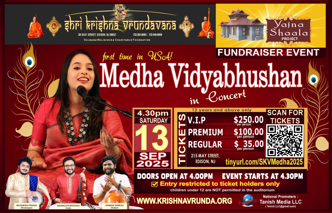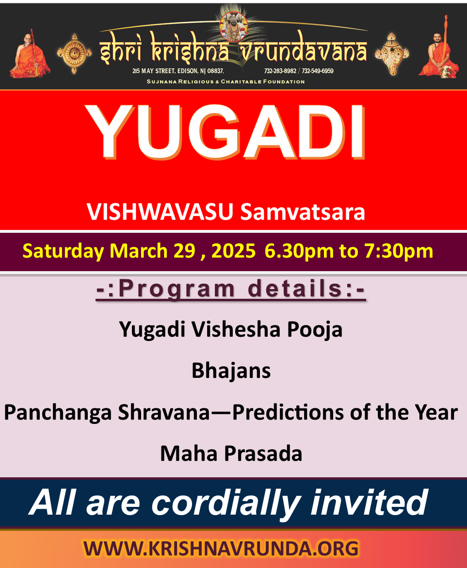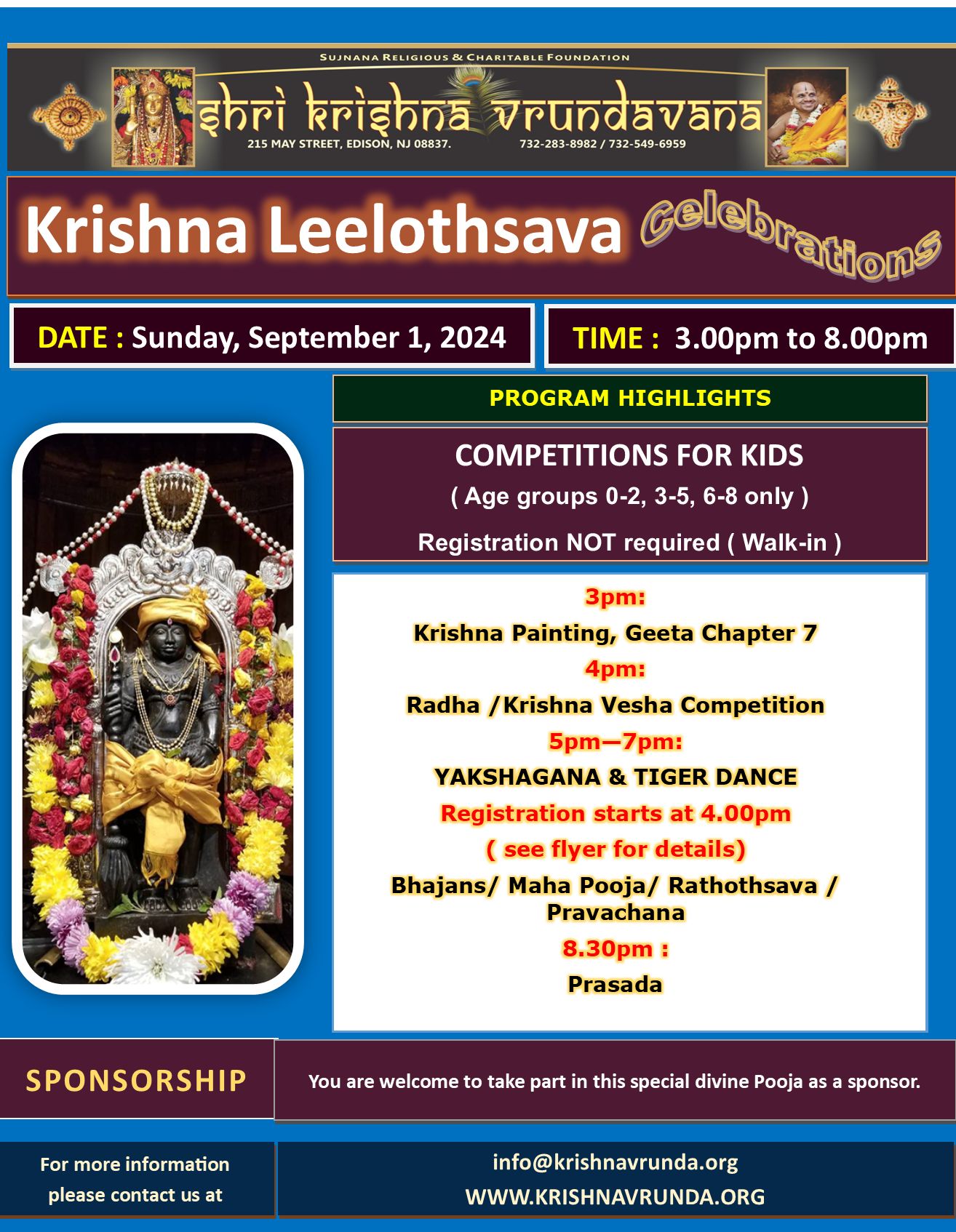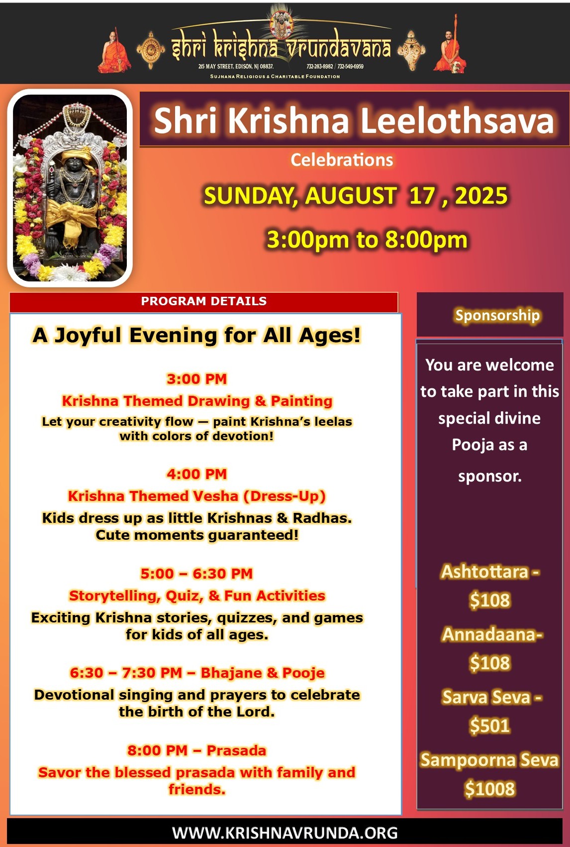 Venue: Shri Krishna Vrundavana, 25 May Street, Edison, NJ 08837