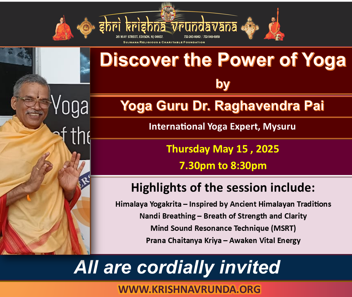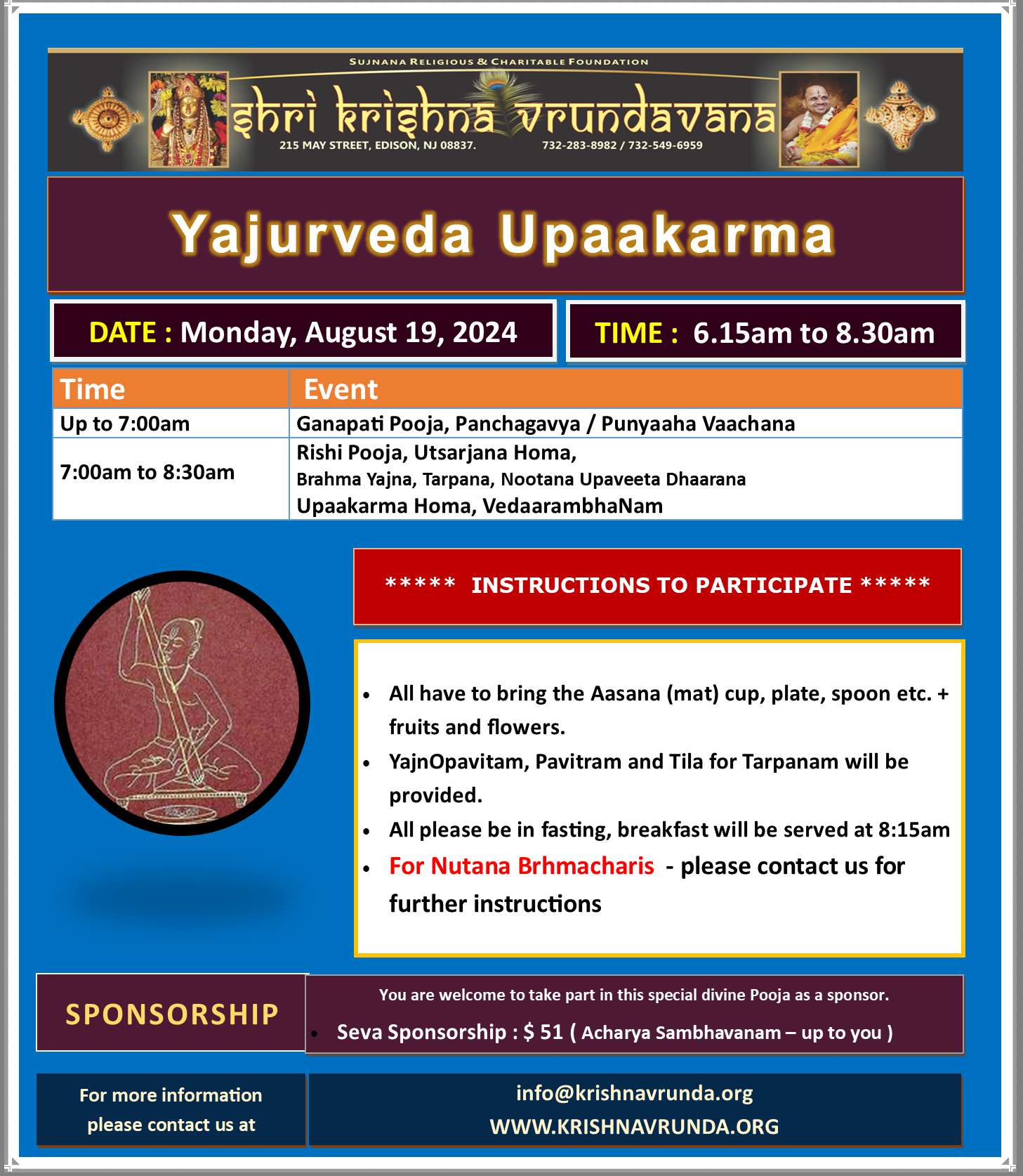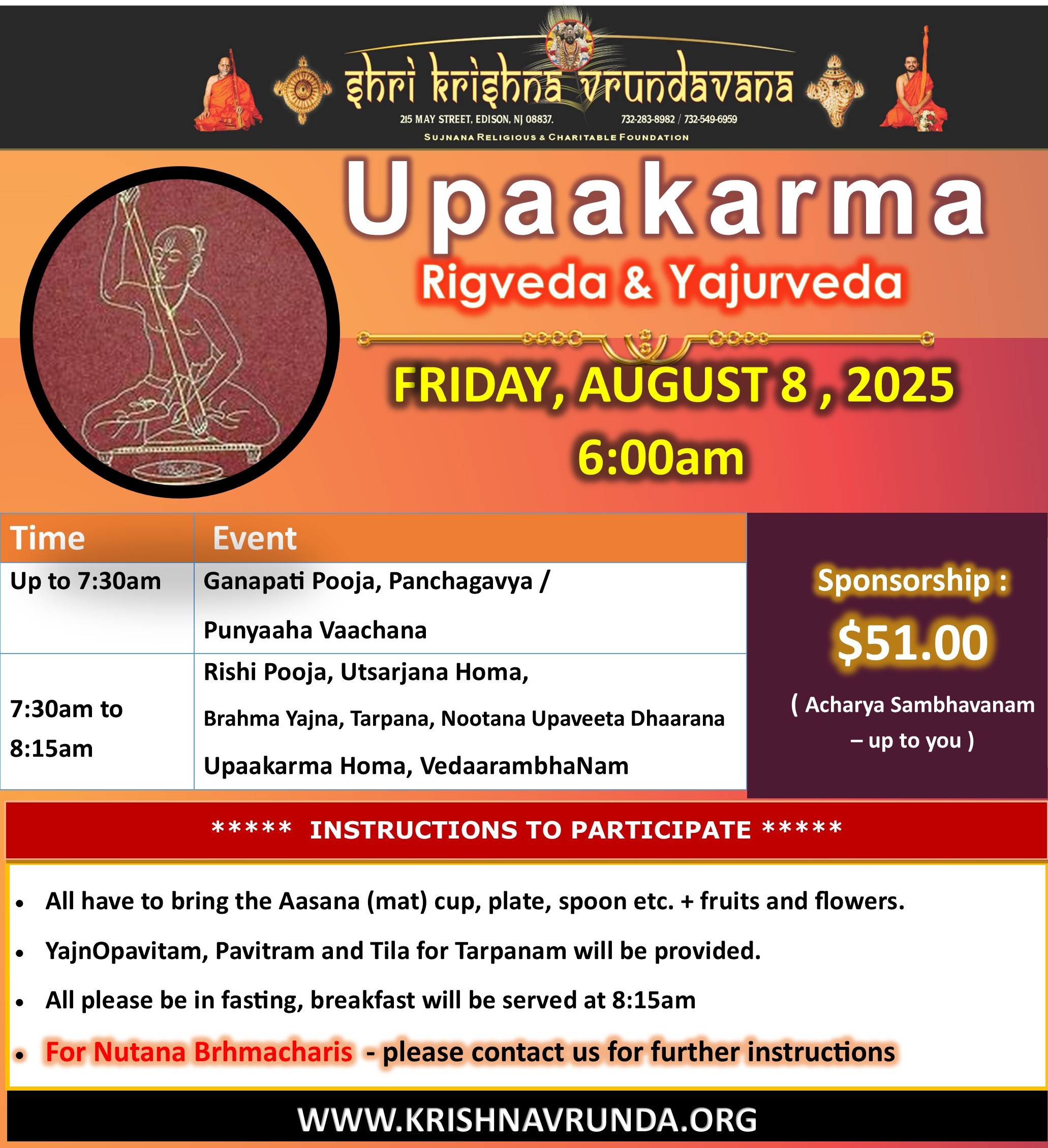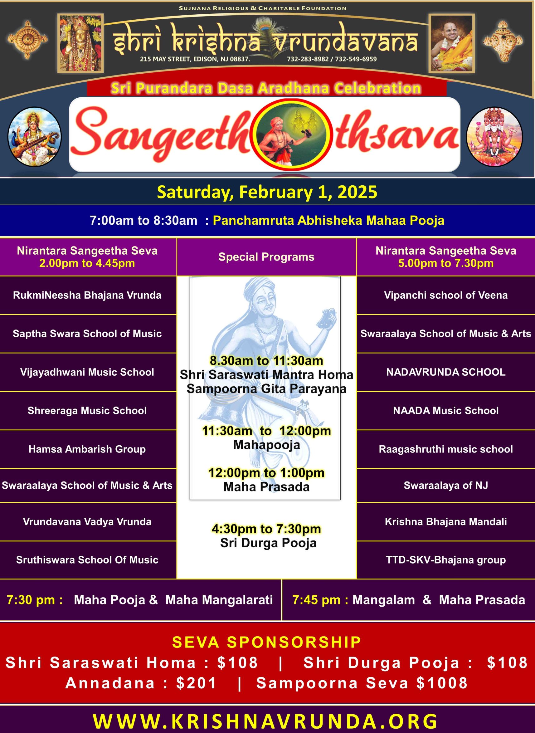 Venue: Shri Krishna Vrundavana, 25 May Street, Edison, NJ 08837