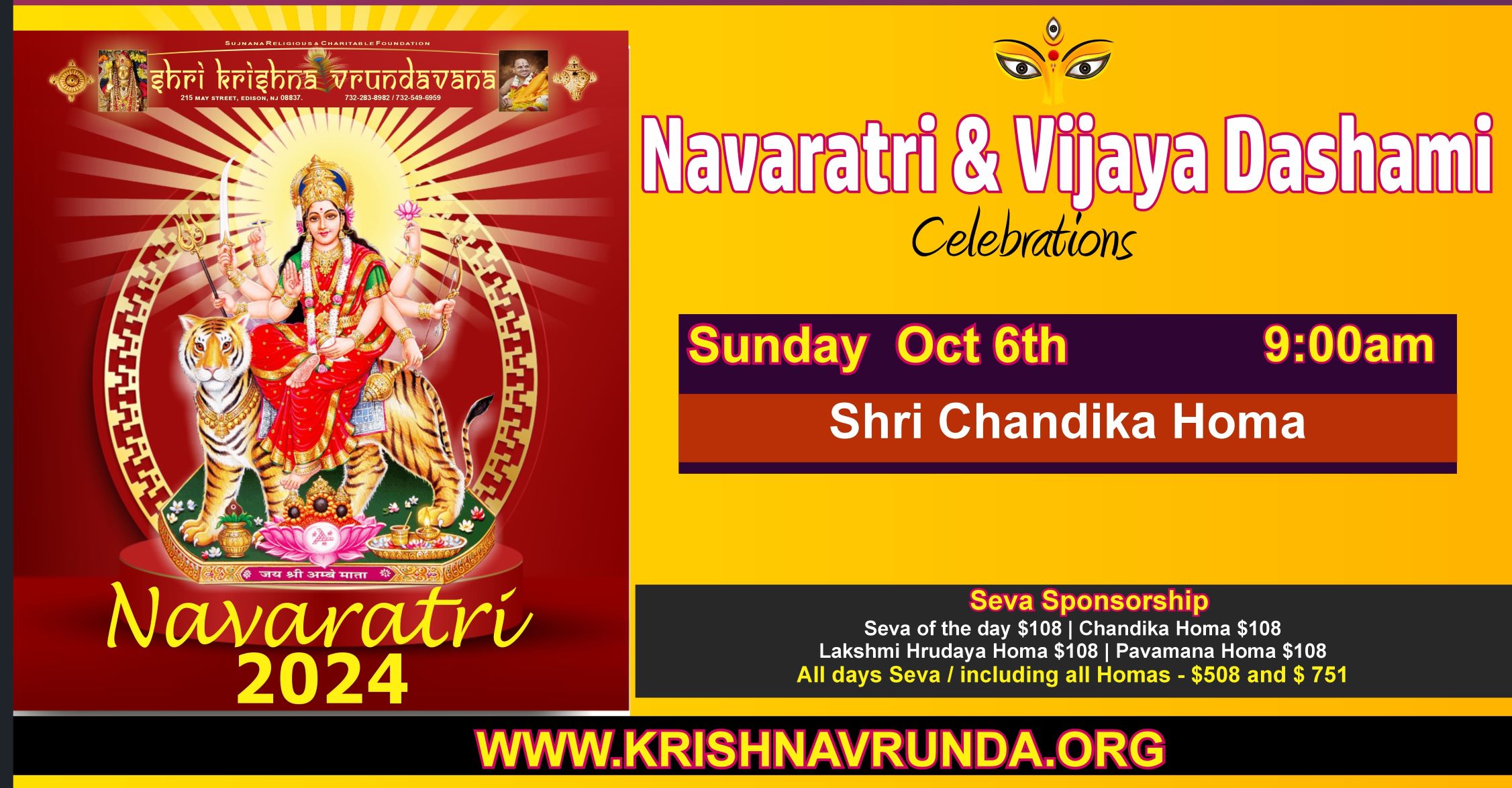 Please join with family & friends to participate in the Chandika Homa and receive the divine blessings of Goddess Durga Maa