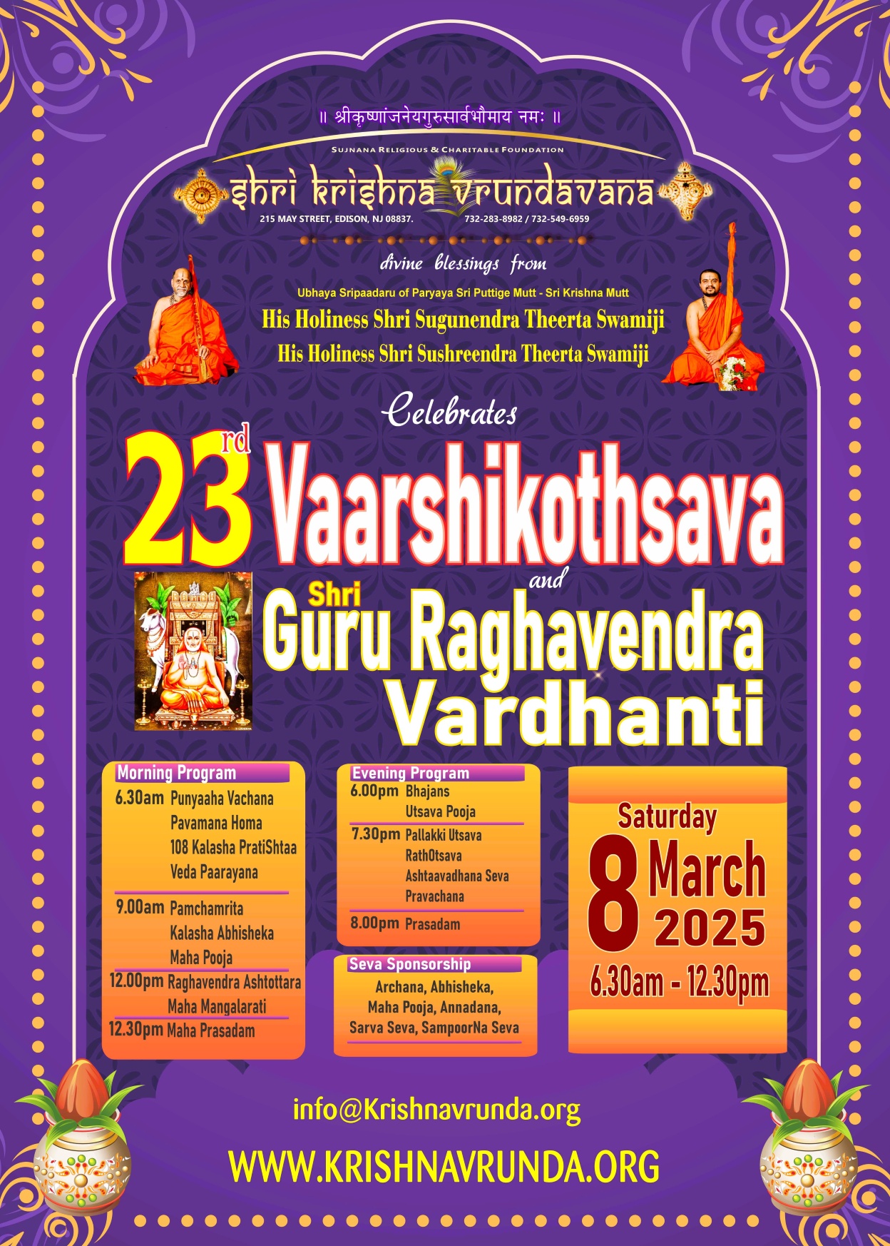 Grand celebration of 23rd anniversary of SKV NJ And Shri Guru Raghavendra Vardhanti
