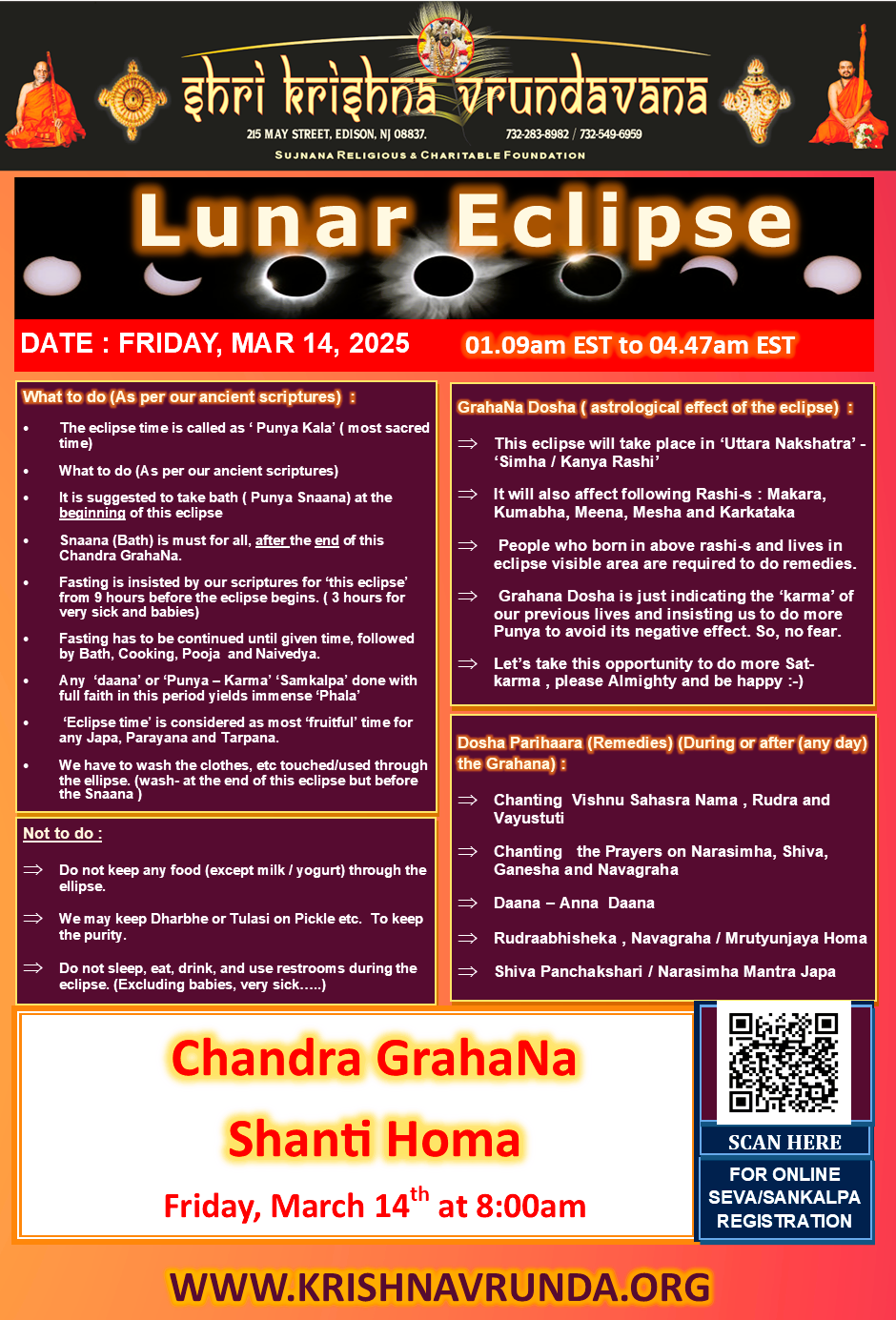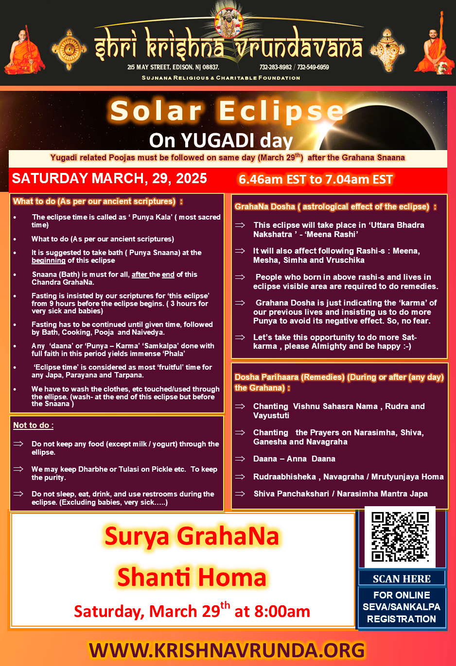8:00 AM : Surya Grahana Shanti Homa with Shri Krishna Vrundavana