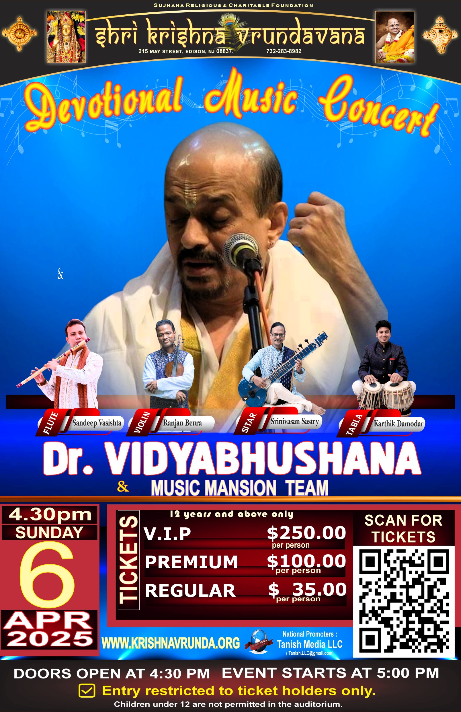SKV NJ proudly presents a great music concert by Dr. Sri Vidyabhushana and Sitar Symphony Team on Sunday April 6 2025 at 5.00pm ( door opens at 4.30pm)