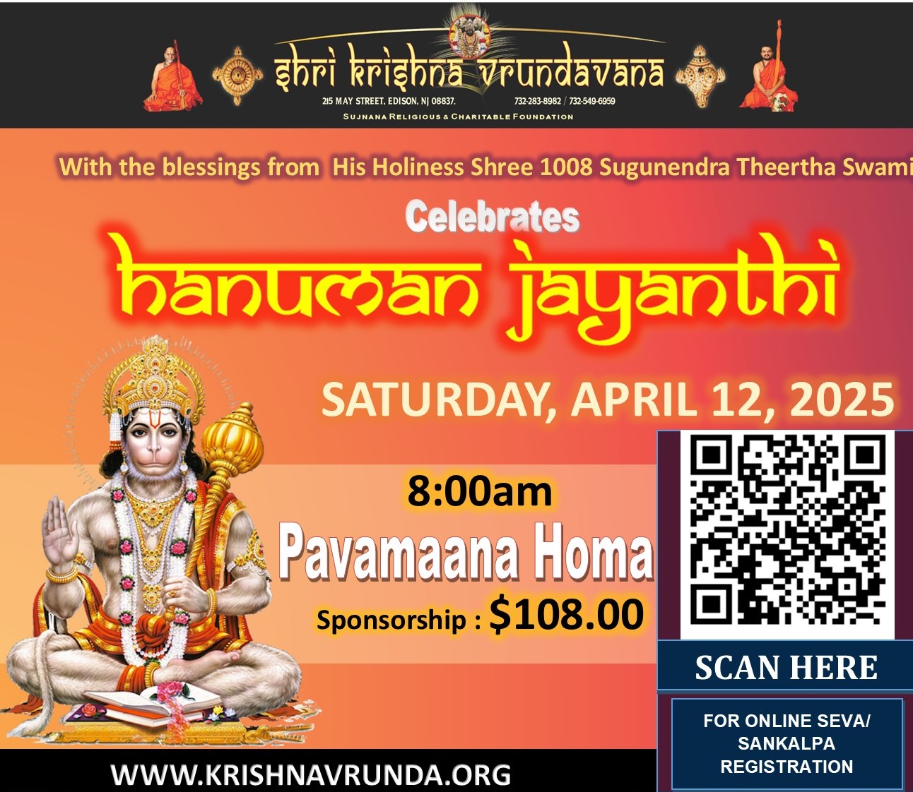 Hanuman Jayanthi Celebration – Saturday, April 12th, 2025