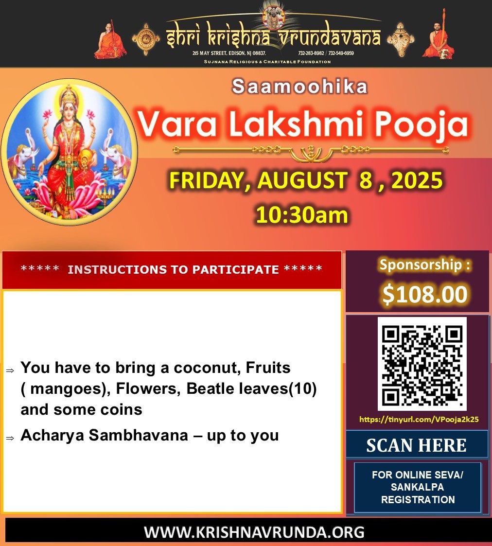 Let’s come together to seek the blessings of Goddess Vara Lakshmi Devi for prosperity, wealth, and family well-being.
