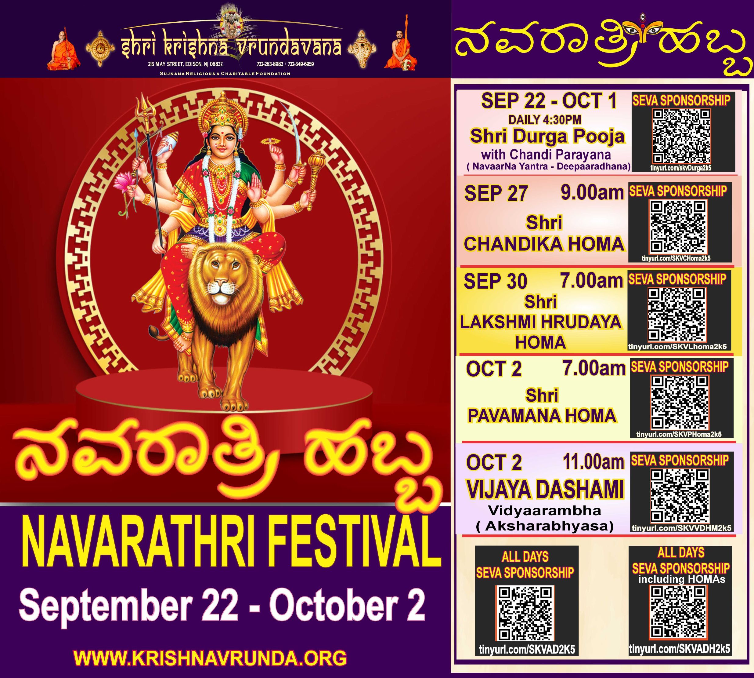 Sep 22 – Oct 2 - Navarathri and Vijaya Dashami