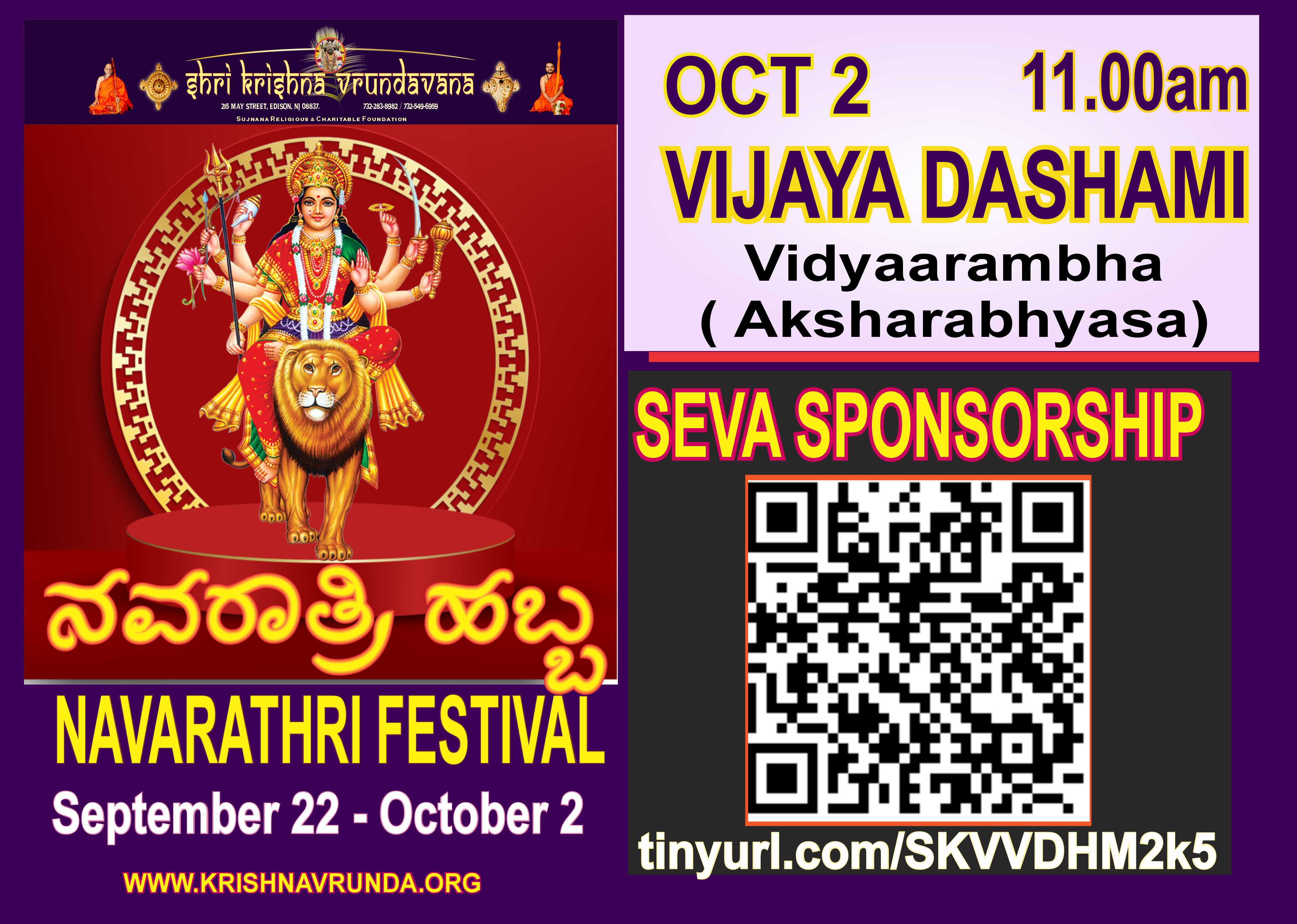 Oct 2 | 11:00 AM – Vijaya Dashami (Vidyarambha – Aksharabhyasa)