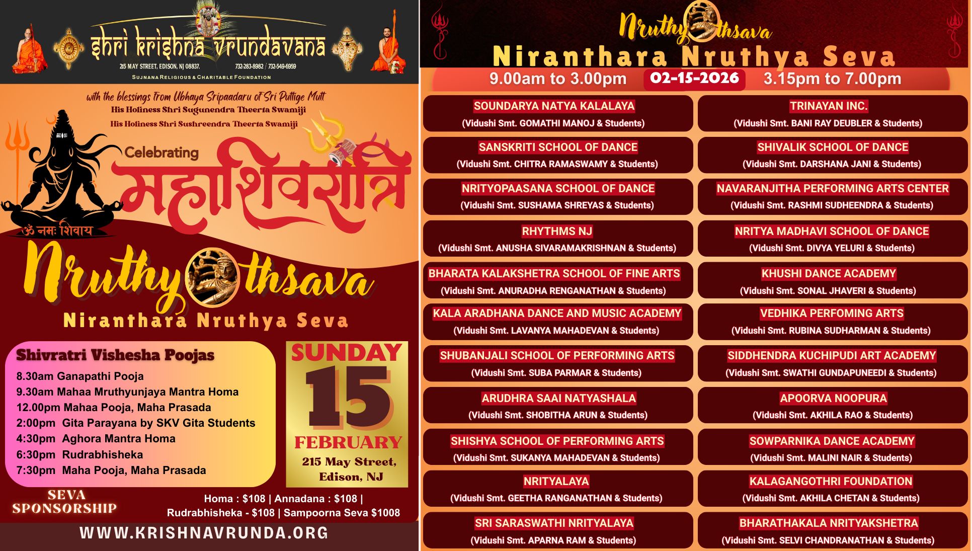 Maha Shivaratri • GRAND NRUTYOTSAVA CELEBRATIONSunday, 15th February 2026, 8.00am- 8.00pm